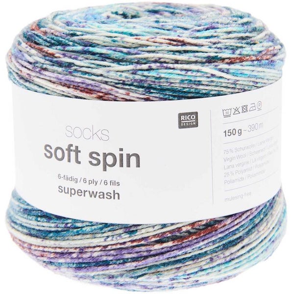 75% wol superwash/25% polyamide - 150 gram = 390meter - breinaald:3-4 - 22stx30nld = 10x10cm - Machine wasbaar1 bol voldoende voor 1 paar sokken tot en maat 45Dit is een 6 draads sokkenwol