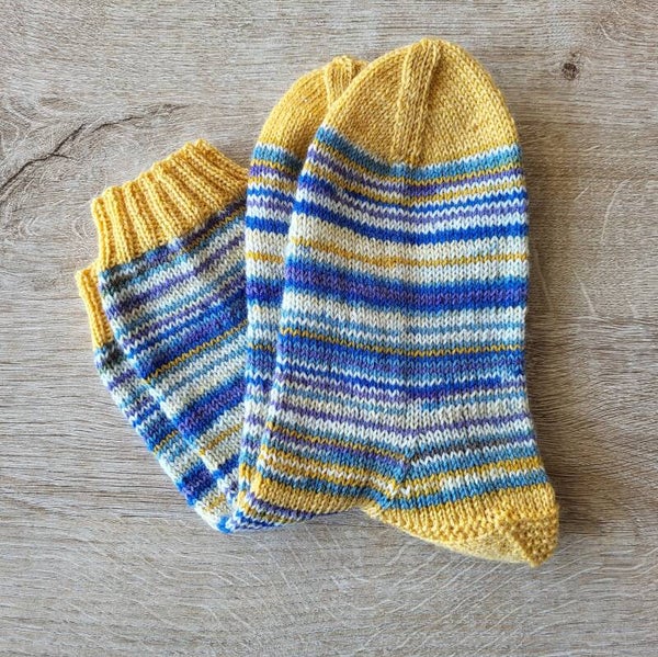 Er is gewerkt met een uni sokkengaren en een multicolor garen.